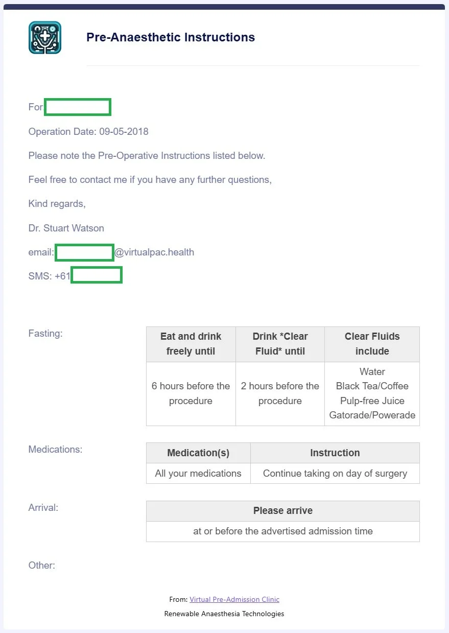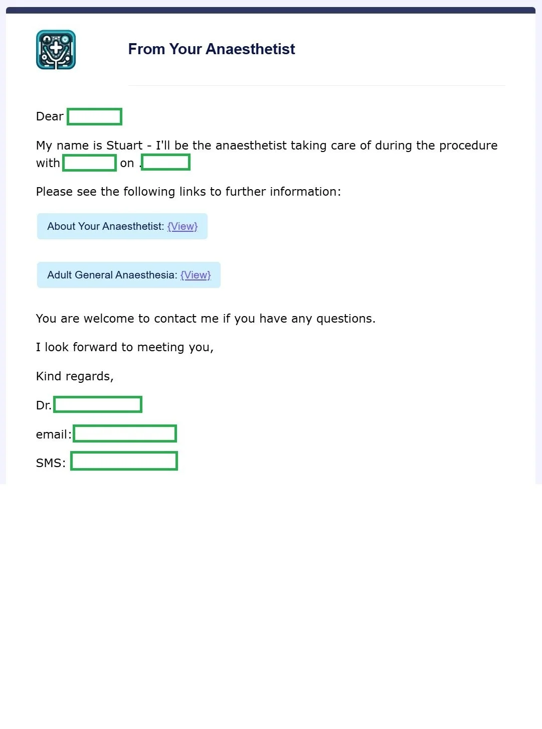 Demo Pre-Anaesthetic Questionnaire Preview Questionnaire Anaesthetist’s Interface Patient Communications